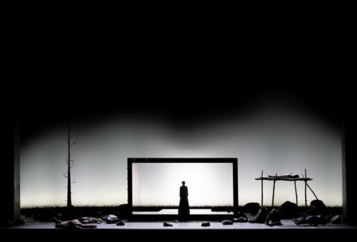 La production particulièrement abstraite de Pierre Audi, qui remonte à 2016, est parfaitement représentative des deux regards portés sur la mise en scène wagnérienne, et notamment sur Tristan und Isolde. L’action en trois actes de Richard Wagner est un drama (δρᾶμα), c’est-à-dire une action théâtrale qui en l’occurrence manque singulièrement d’action, tant les personnages discutent, monologuent, dialoguent. Les seuls véritables moments où quelque chose se passe c’est le final du deuxième acte avec le « duel » entre Melot et Tristan, qui aboutit à la blessure mortelle du héros, et la fin du troisième acte, qui est un véritable jeu de massacre, où selon les mises en scène, toute (ou partie de) la distribution passe ad patres. On a tant et tant écrit sur les sources philosophiques de Tristan und Isolde et notamment Schopenhauer que c’est l’opéra où peut-être, plus que Parsifal encore, l’abstraction scénique reste de règle.